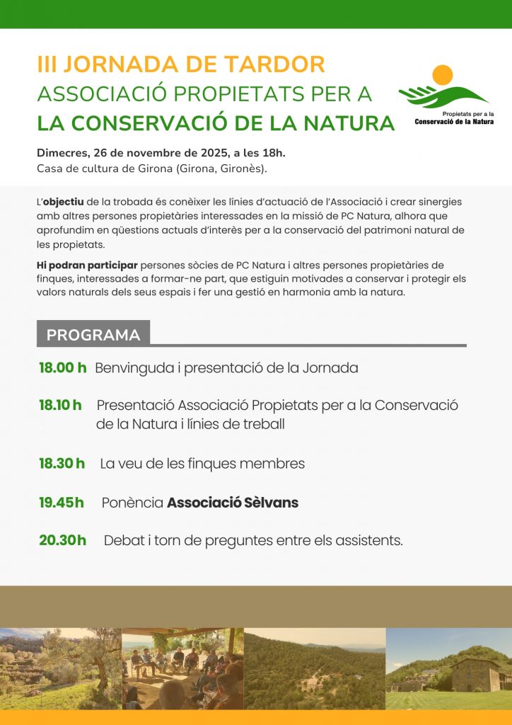 El pròxim dimecres 26 de novembre de 2025, a les 18.00 h, celebrarem la III Jornada de Tardor de PC Natura a la Casa de Cultura de Girona (Girona, Gironès).